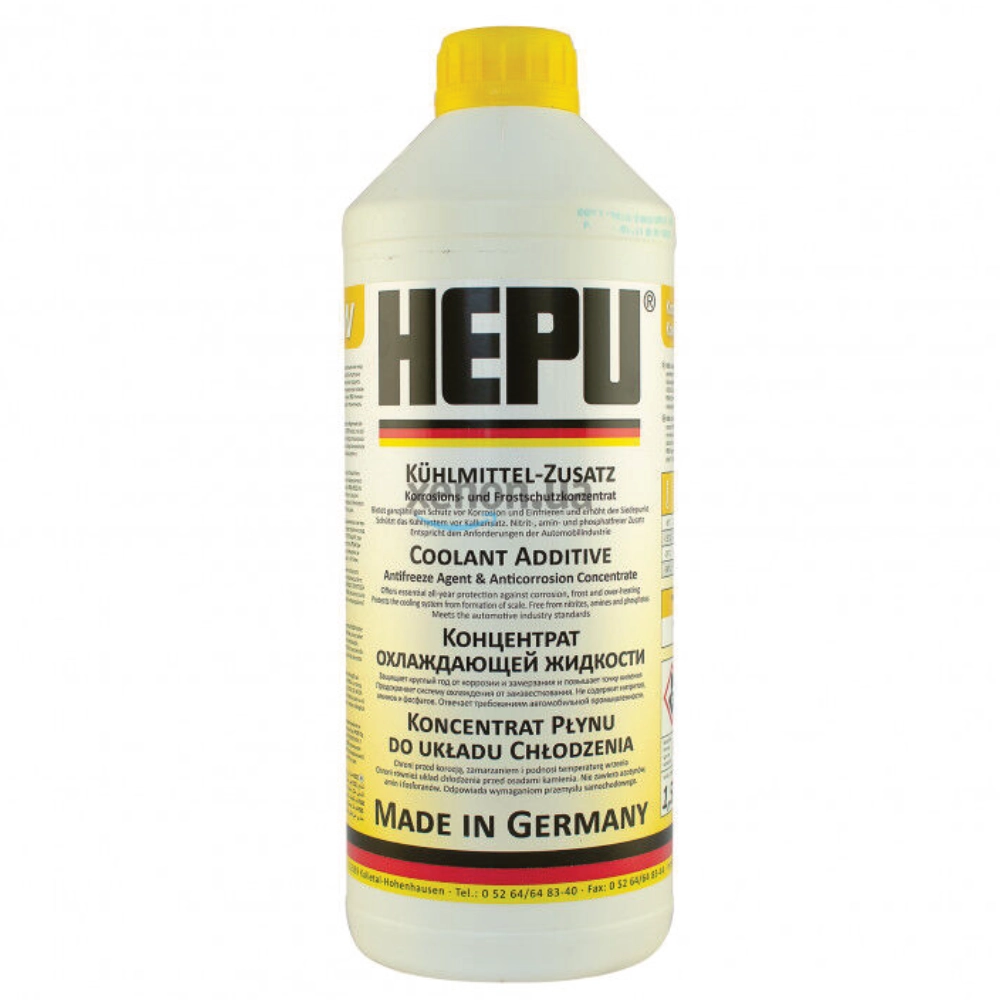 Желтый премиальный антифриз концентрат HEPU P999-YLW (Германия) класса G11 с температурным режимом -38°C объемом 1.5 литра. Является концентратом, предназначен для смешивания с дистиллированной водой. Концентрированная охлаждающая жидкость универсального применения. Защищает от замерзания, перегрева, коррозии и образования известкового налёта. Предназначена для алюминиевых и чугунных двигателей. Не содержит нитритов, аминов и фосфатов.
