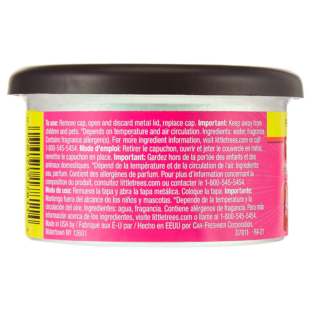 Удобный и долго сохраняющий запах ароматизатор "консерва" Little Trees Fiber Can Air Freshener, с пластиковой крышкой для регулировки интенсивности запаха. Вы можете сами настроить, на сколько сильно будет издаваться запах от ароматизатора. Удобно ставить в подстаканник или под сиденье автомобиля. Приятный запах в салоне, багажнике Вашего автомобиля, а также дома в санузле, шкафу.